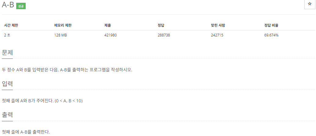 두 정수 A와 B를 입력받은 다음, A-B를 출력하는 프로그램을 작성하시오.