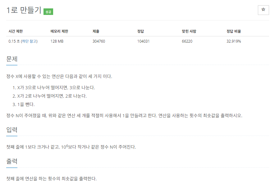 우리가 한 숫자에 대해 1로 만들기 위해 할 수 있는 행위는 총 3가지로 한정된다.